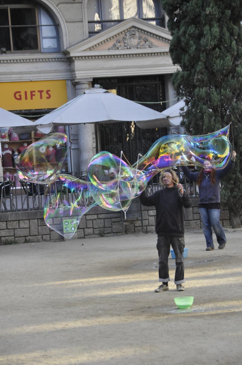 Dziś jest poniedziałek, więc nie ma co liczyć na wstępy do obiektów. Postanawiamy obejrzeć wzgórze Montjuic. Tak jak w poprzednie dni, idziemy pieszo wybierając ulice, którymi jeszcze nie szliśmy. Po drodze wstępujemy na kawę do kawiarni i okazuje się, że przypadkiem jest to kawiarnia indyjska. Kiedy właściciel przynosi mi kawę, wokół uszka filiżanki widnieje dobrze zakonserwowana warstwa brudu, natychmiast kojarzy mi się to z pobytem w Indiach. Wprawdzie inny kraj, ale mentalność właściciela ta sama.