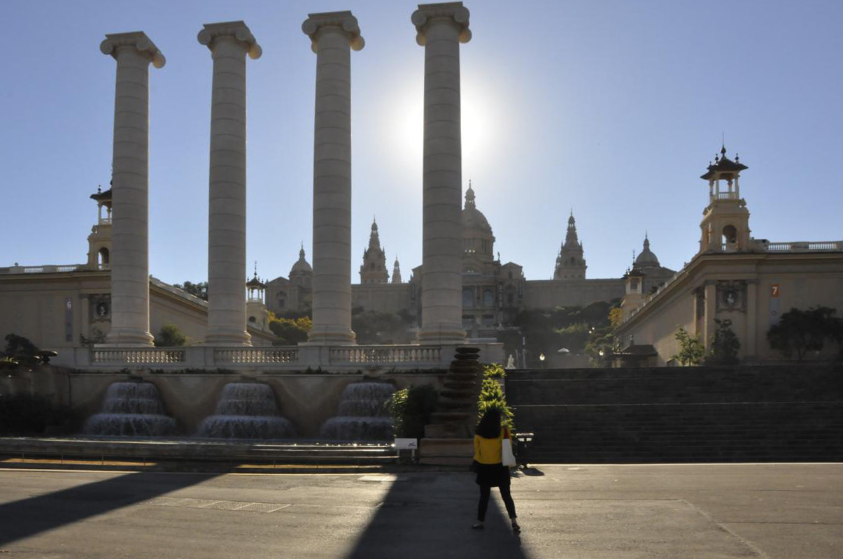 Budynki wybudowane tutaj na wystawę światową w roku 1929, nie robią na nas wrażenia, ich monumentalizm w mieście w którym jest tyle przykładów wspaniałej architektury, nie stanowi powodu do dumy. Najpiękniejsze dla nas są fontanny, których tutaj jest ogromna ilość. Wjeżdżamy na wzgórze ruchomymi schodami, aby znaleźć się przy okazałym Muzeum Sztuki Katalońskiej. Według przewodnika znajdują się tutaj wspaniałe zbiory współczesnej sztuki katalońskiej. Szczegółowe zwiedzanie wnętrza zostawiamy na następny przyjazd, dzisiaj szkoda pięknej pogody i w planach mamy jeszcze wiele innych atrakcyjnych punktów.
