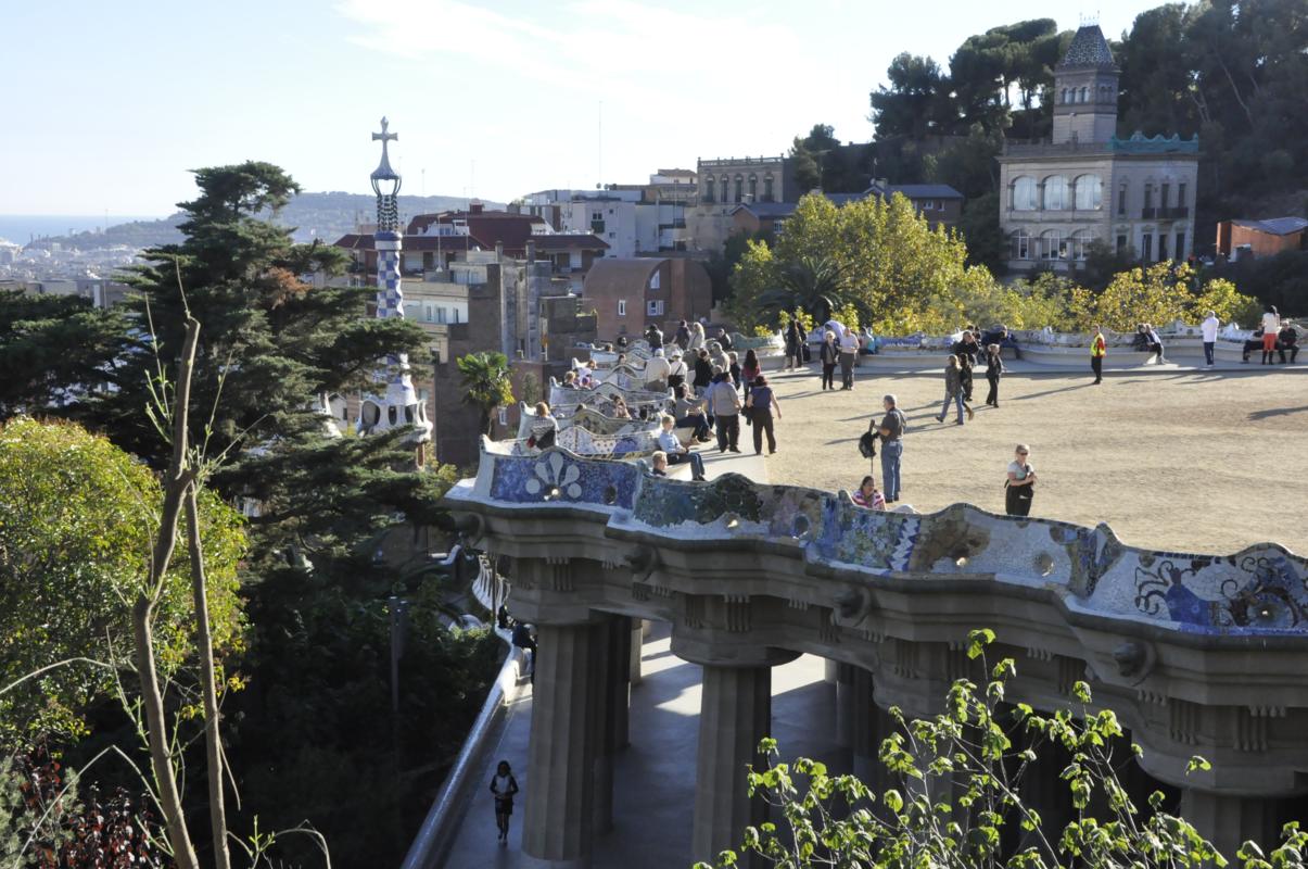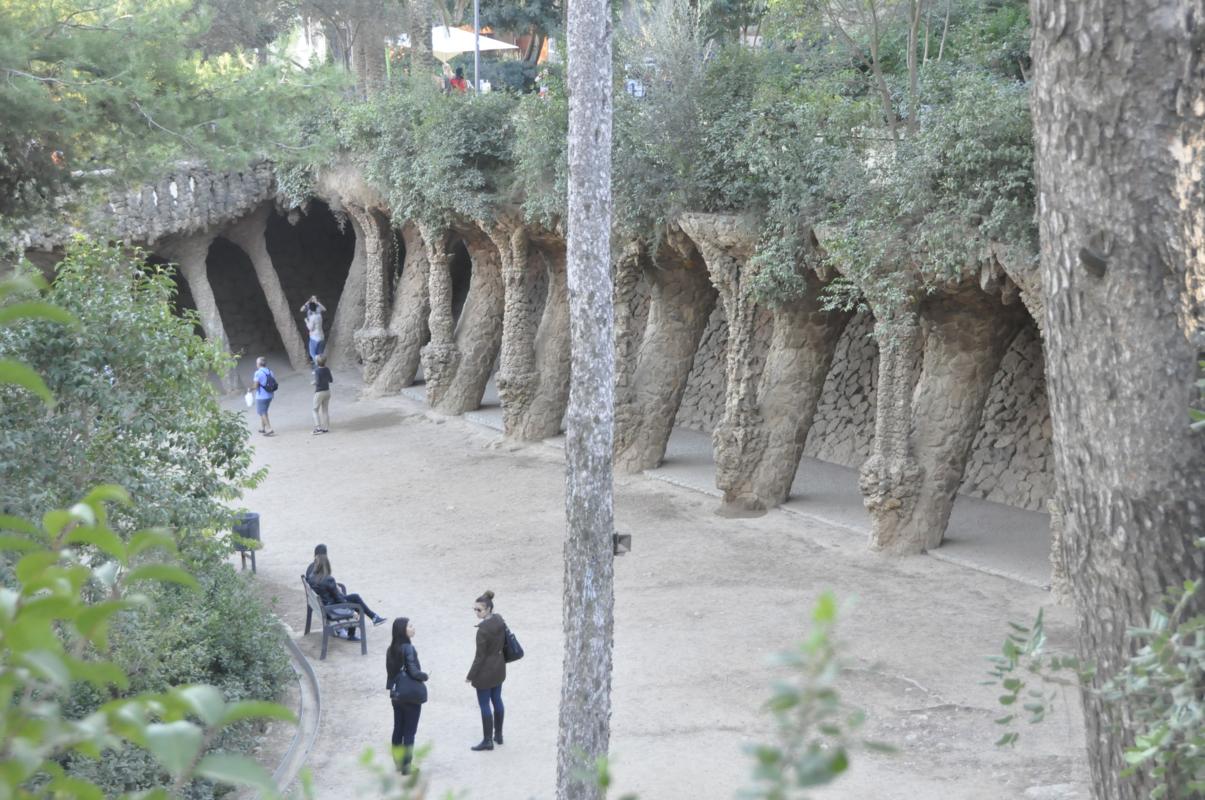 Jako ostatnie miejsce do zwiedzania wybrałam park Guell. Na nasze szczęście działały ruchome schody! Piękna pogoda i sława tego miejsca, ściągnęły ogromną liczbę zwiedzających. Tłumy turystów zakłóciły wrażenia, że oto znaleźliśmy się w fantastycznych pieczarach i bajkowych okolicach. Ale i tak było warto!