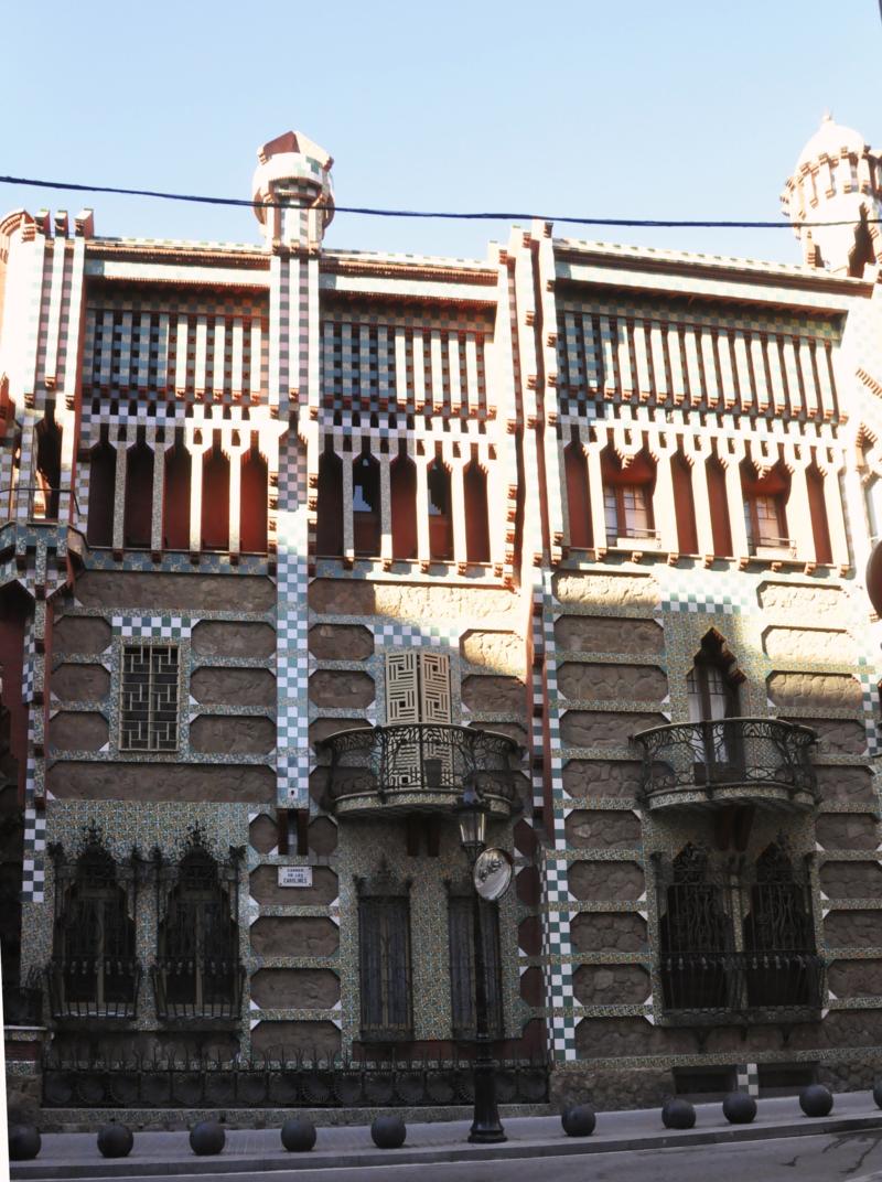 Aby zobaczyć kolejny budynek wybudowany przez Gaudiego jedziemy metrem do przystanku Fontana. Kiedy tam docieramy, zdezorientowana pytam starszą kobietę gdzie jest ulica les Carolines i słyszę w odpowiedzi, że takiej ulicy nie ma w pobliżu. Ale kiedy powiedziałam, że szukam budynku Gaudiego, natychmiast nas tam skierowano i była to ulica les Carolines. Fasada Casa Vicenc jest niezwykle bogato ozdobiona. Przypomniała mi kolorowe zdobienia pustynnych pałaców na południu Tunezji.