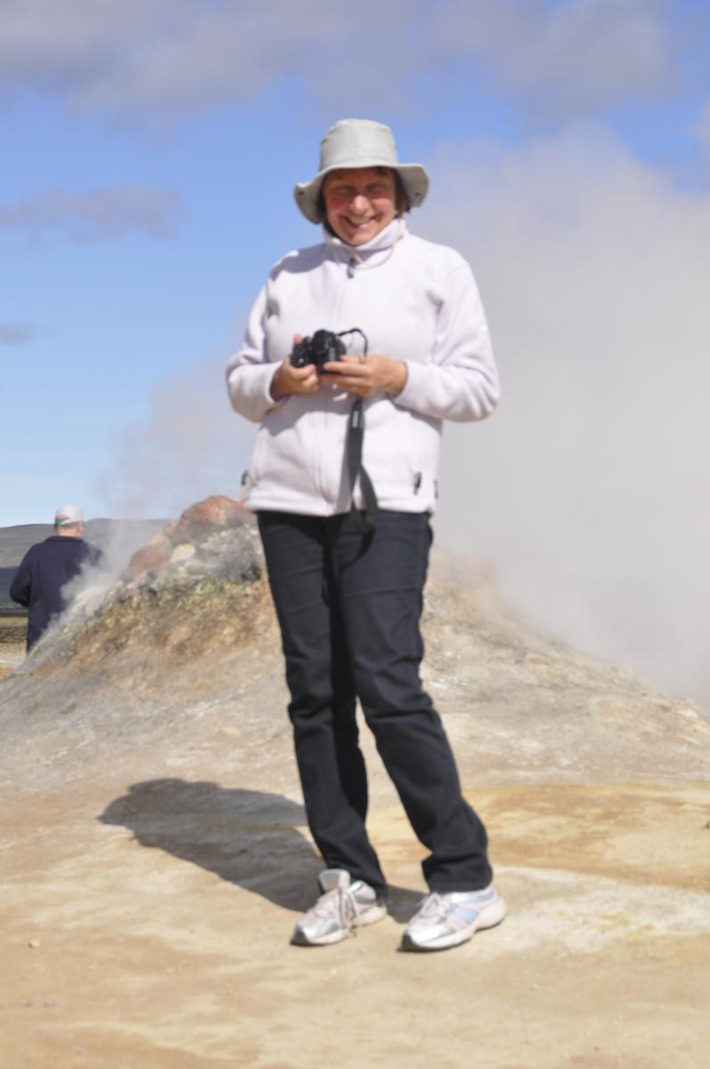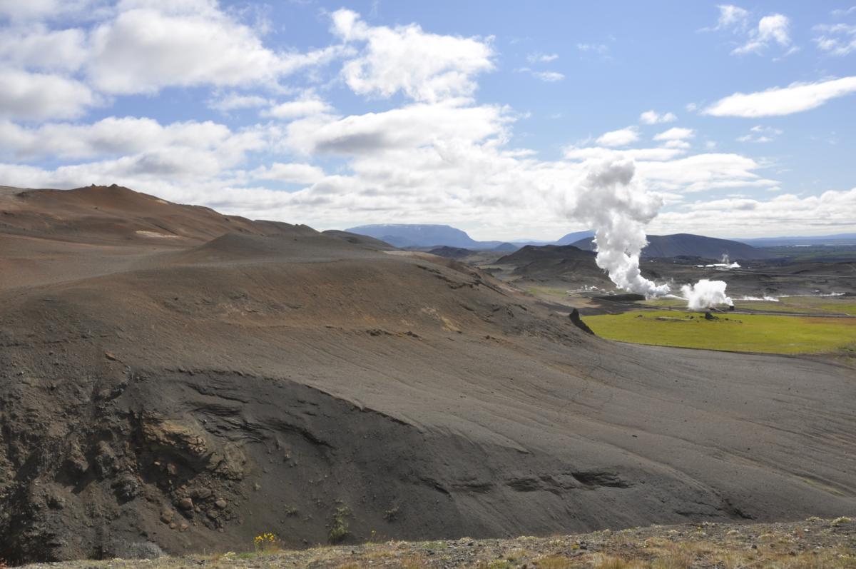 Na dymiące wzgórza, parujące pseudokratery, zielone łąki pokrywające czarną ziemię powulkaniczną. Nareszcie czuję się jak na Islandii. Tak, jak sobie wyobrażałem, że ma być. Jeszcze tylko do szczęścia mi brakuje, aby jakiś wulkan zrobił „puf”, albo przynajmniej małe trzęsionko ziemi... Niestety, nie można mieć wszystkiego...