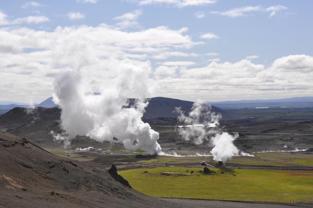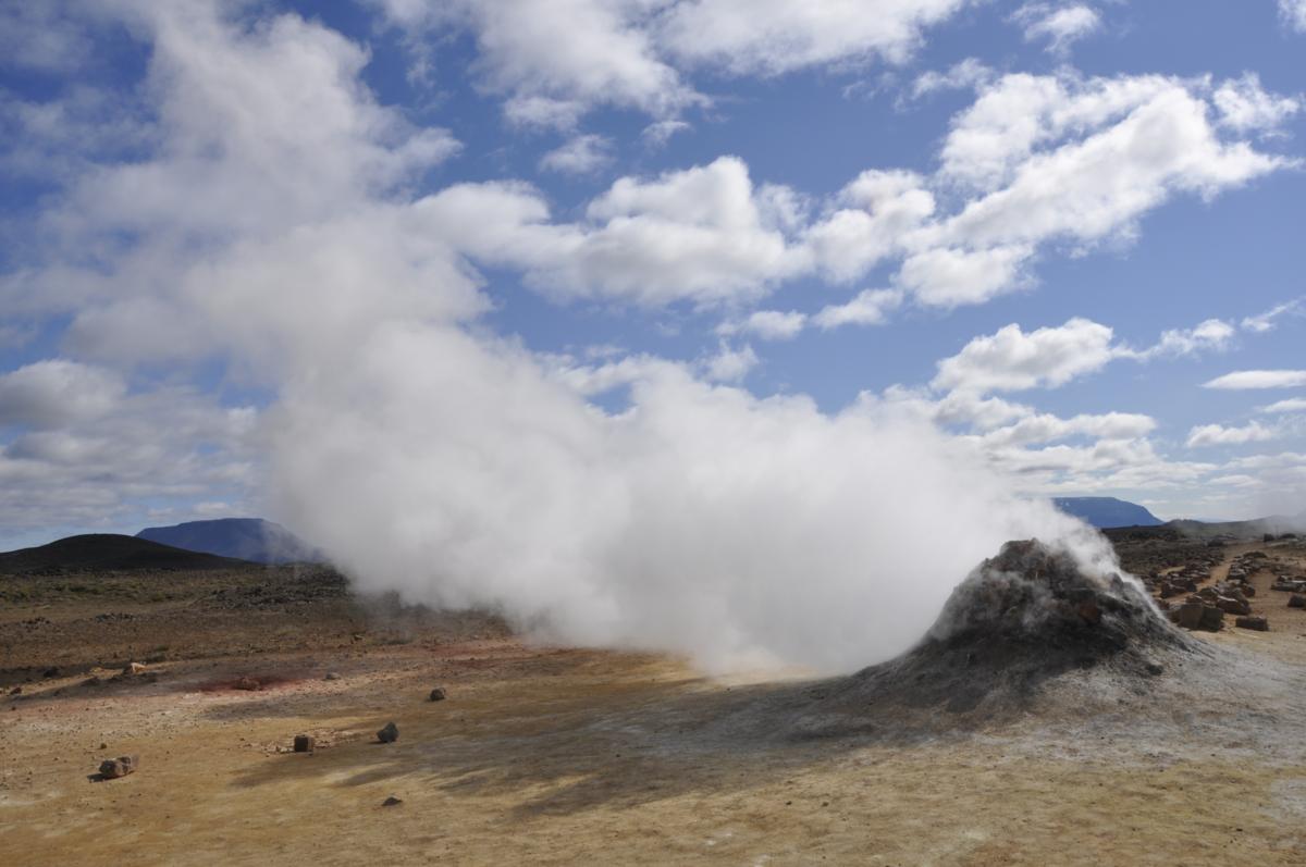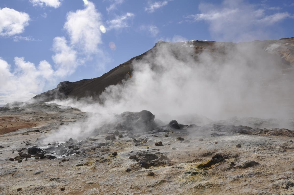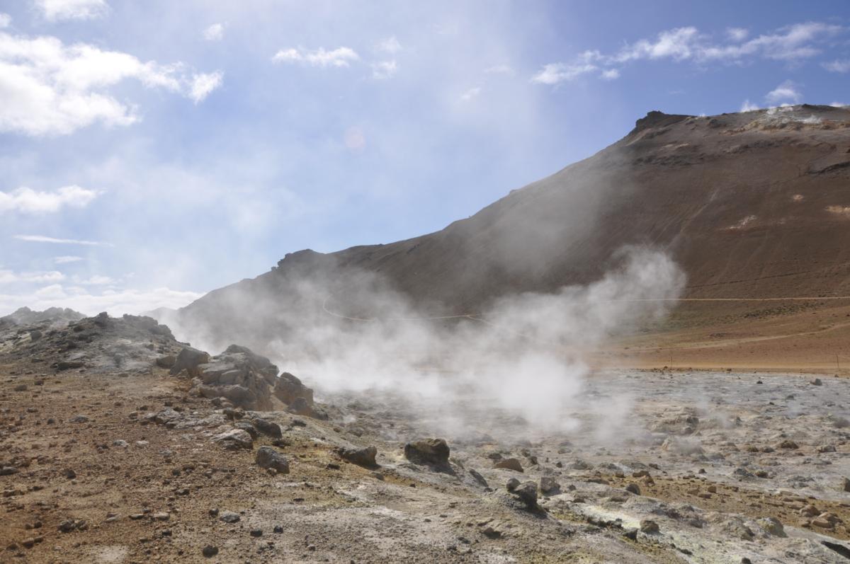 Dzisiaj co i rusz mamy nowe wrażenia. Niedaleko za pasmem wzgórz znowu skierowanie do punktu widokowego. Już z daleka widać pionowe słupy pary wodnej na tle niebieskiego nieba. Przejrzystość tutaj jest niespotykana nigdzie indziej, więc i widoki cudne!