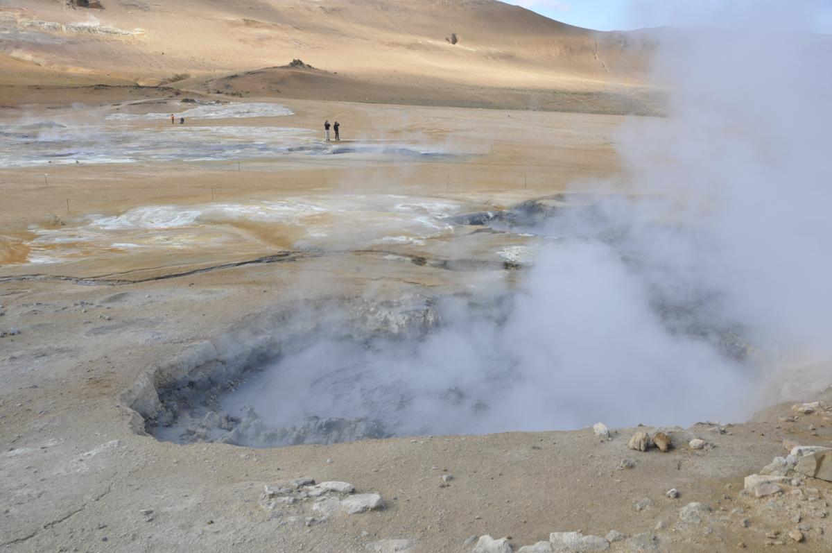 Gotujące się sadzawki błotne (wg Pani Eli), albo jak kto woli smolne (wg mnie – zawszeć, to ciekawiej brzmi, a i to czarne, i to czarne). Odpowietrzniki kraterów z wydobywającą się z nich parą, która ma specyficzny zapach siarkowodoru. Jak zawiewa, to aż w nosie kręci.