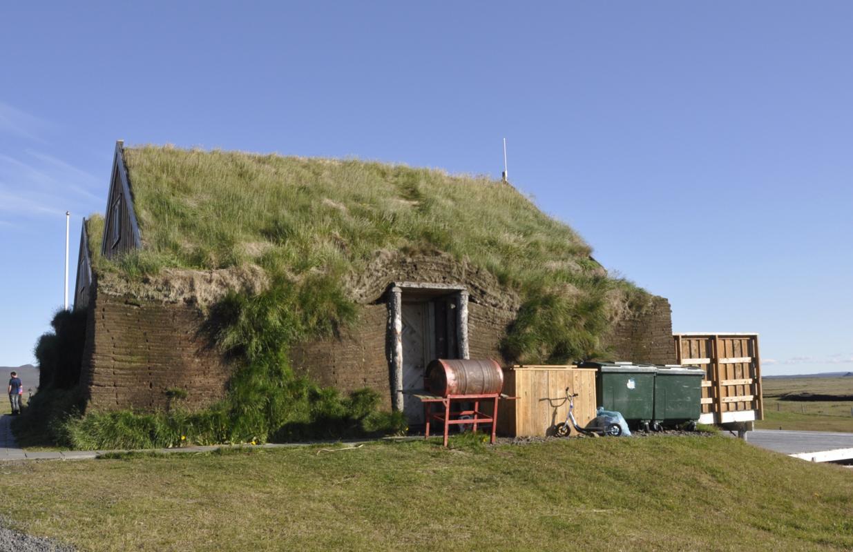 Skręcam i jadę jakieś 4 kilometry do wioski Grimsstadir (nazwa, jak z Tolkiena). Wioska składa się z dwóch, czy trzech domków położonych na rozległym płaskowyżu. W jednym można się napić kawy. Oferują również nocleg. Za jedyne 15 500 koron. Na nocleg nas nie stać, ale kawę wypijamy z przyjemnością. Przed domem poustawiane są stoliki, przy których można usiąść. Kiedy siadamy przyplątuje się miejscowy piesek, który dopomina się o pieszczoty.