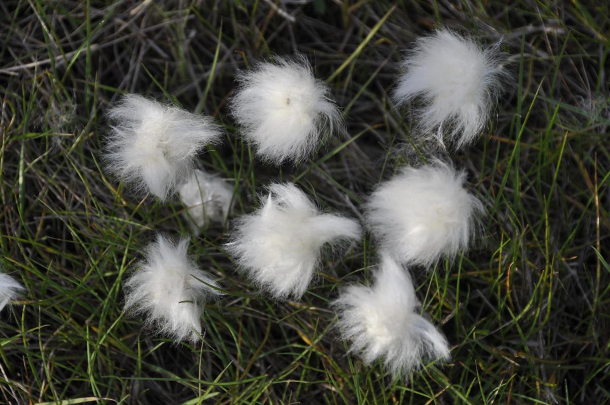 Nad samym brzegiem strumienia, gdzie się zatrzymaliśmy, rosną białe kwiatki, których główki wyglądają, jak pęczki bawełny. Tyle, że to cienkie niteczki wyrastające z „główki” kwiatka, a nie kłębki waty. Wiatr powiewa i czesze białe włoski...
